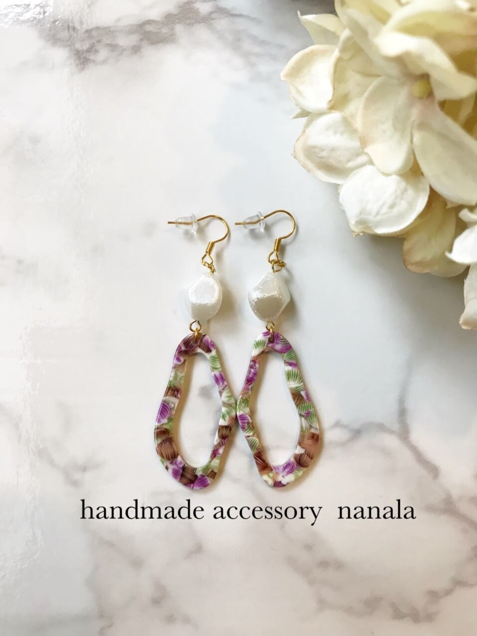 アクリルのカラフルなパーツを使った、夏にぴったりのアクセサリーです。